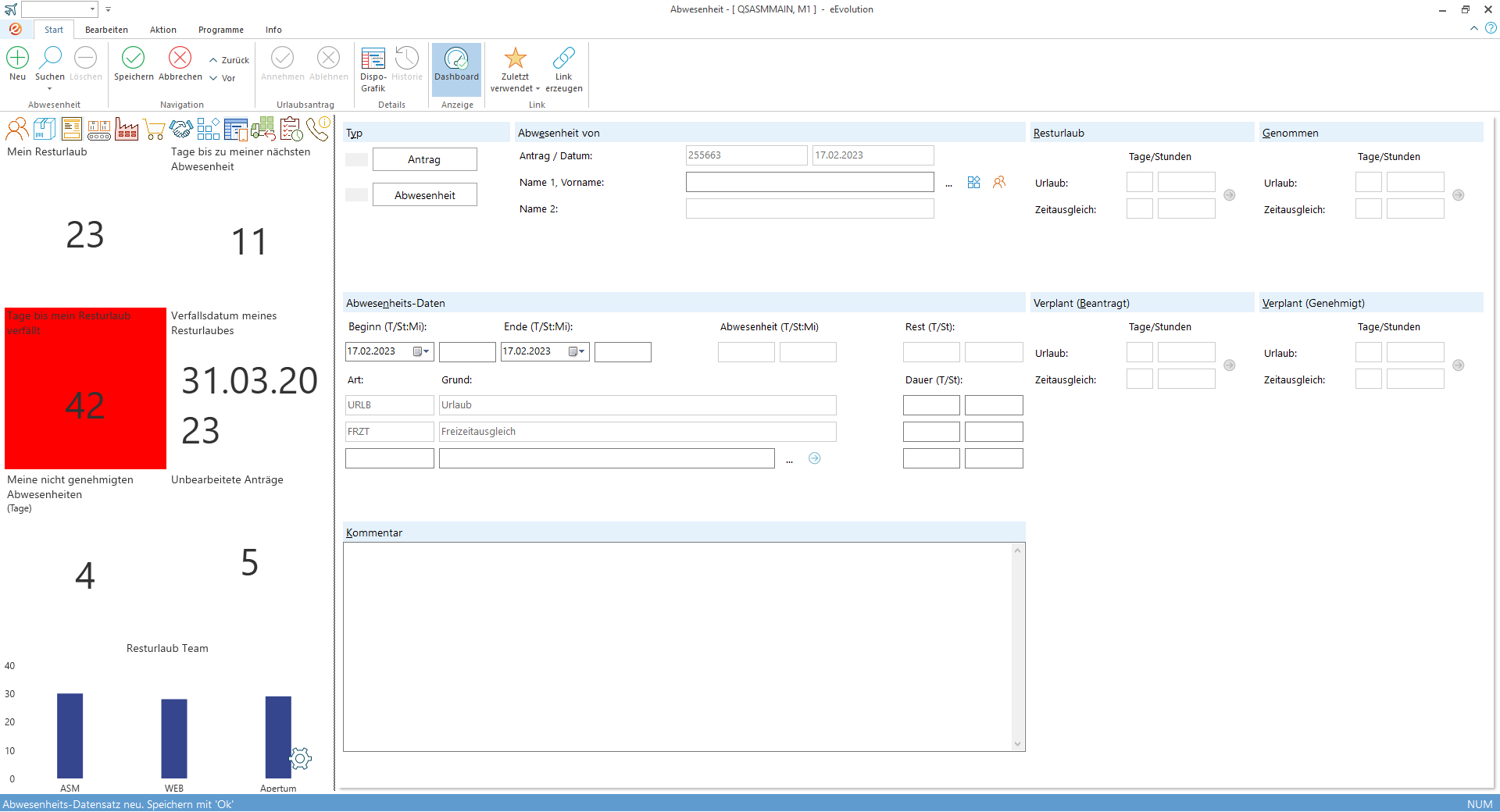 Ein neuer Abwesenheitsdatensatz kann erstellt werden. |