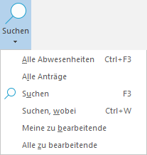 Abhängig von den Benutzereinstellungen ist entweder die Option Antrag oder Abwesenheit voreingestellt.
