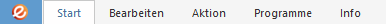 Unter Windows ist der erste Menüpunkt stets 'Datei'. In eEvolution®finden Sie stattdessen den Modulnamen, z.B. Auftrag, oder KuLiMi oder auch in diesem Fall die Bezeichnung Start. Unten werden die einzelnen Schaltflächen tabellarisch beschrieben.