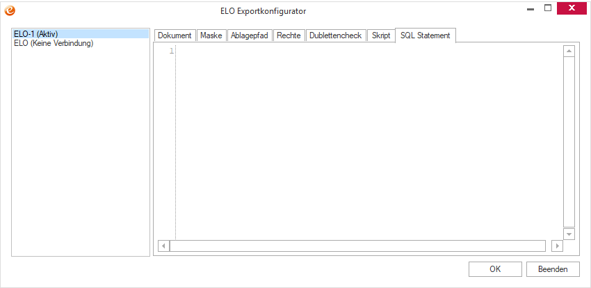 Hier kann ein individuelles SQL-Statement hinterlegt werden, um zusätzliche, vom Dokument benötigte, Daten abzufragen. Sie können hier EIN SQL-Statement hinterlegen, mit dem diese zusätzlichen Daten aus der Datenbank selektieren können.