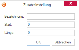 Hier können Sie der Indexzeile einen Wert zuordnen. dabei kann es sich entweder um einen Freitext oder um ein Schlüsselwort aus den Exportmoduldaten handeln. Mit einem Doppelklick oder durch Drucken des Symbols öffnet sich der Dialog "Zusatzeinstellung", wo Sie ebenfalls den Wert konfigurieren, sowie den Start und die Länge der Indexzeile festlegen können.