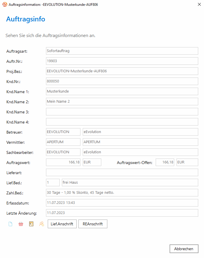 . Sie erhalten die folgende Übersicht mit allen wichtigen Informationen zu dem dazugehörigen Auftrag: